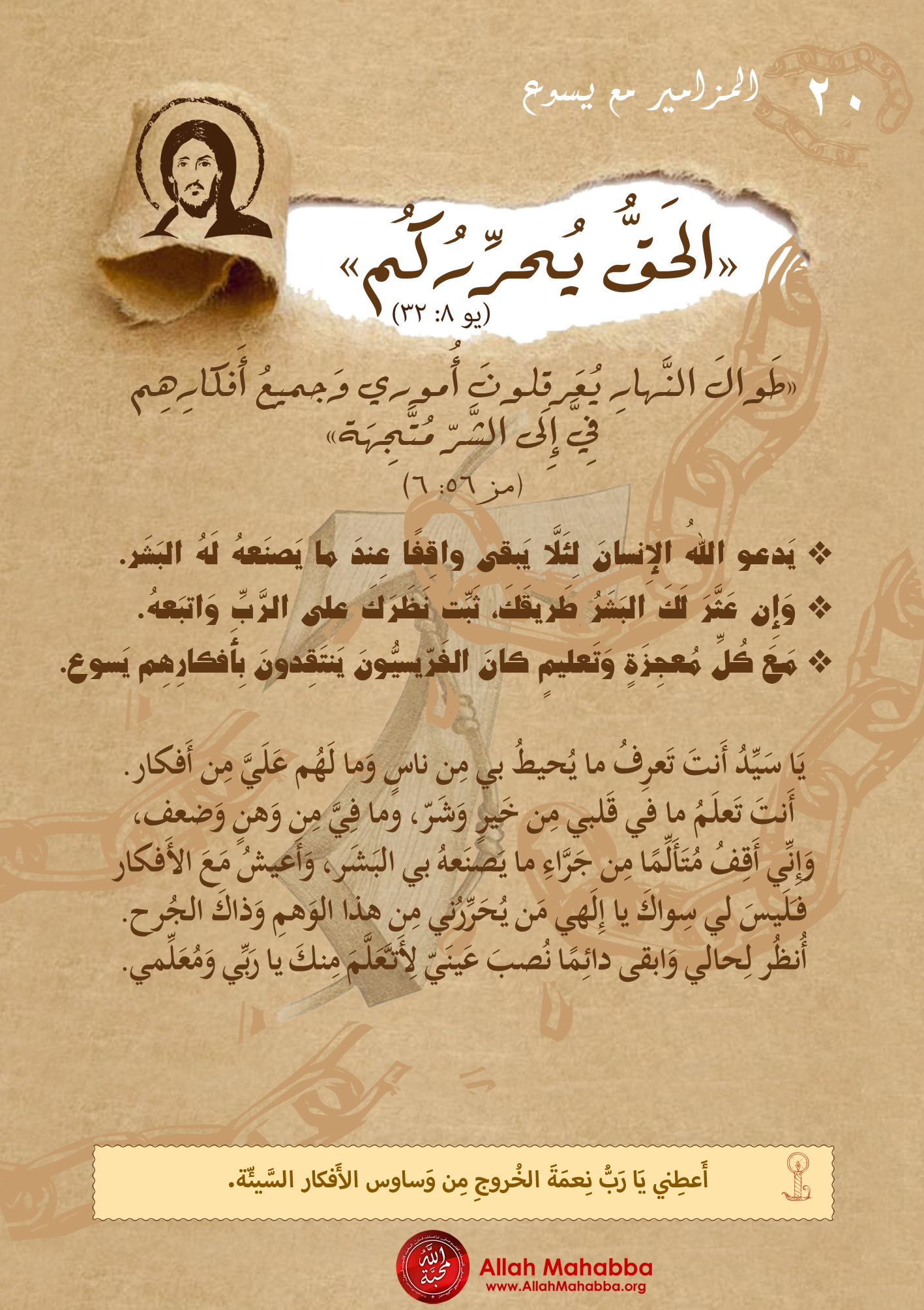 أَعطِني يَا رَبُّ نِعمَةَ الخُروجِ مِن وَساوس الأَفكار السَّيئّة.