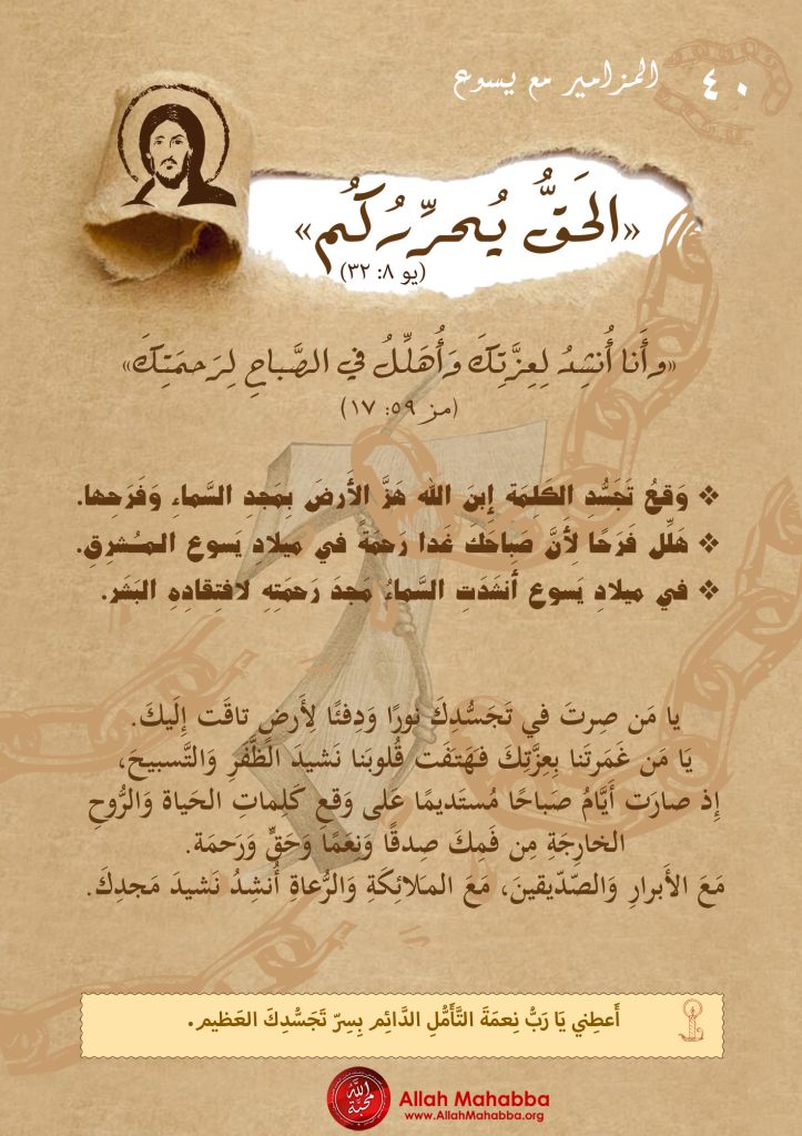 - هَلِّل فَرَحًا لِأَنَّ صَباحَكَ غَدا رَحمَةً في ميلادِ يَسوع المـُشرِقِ.