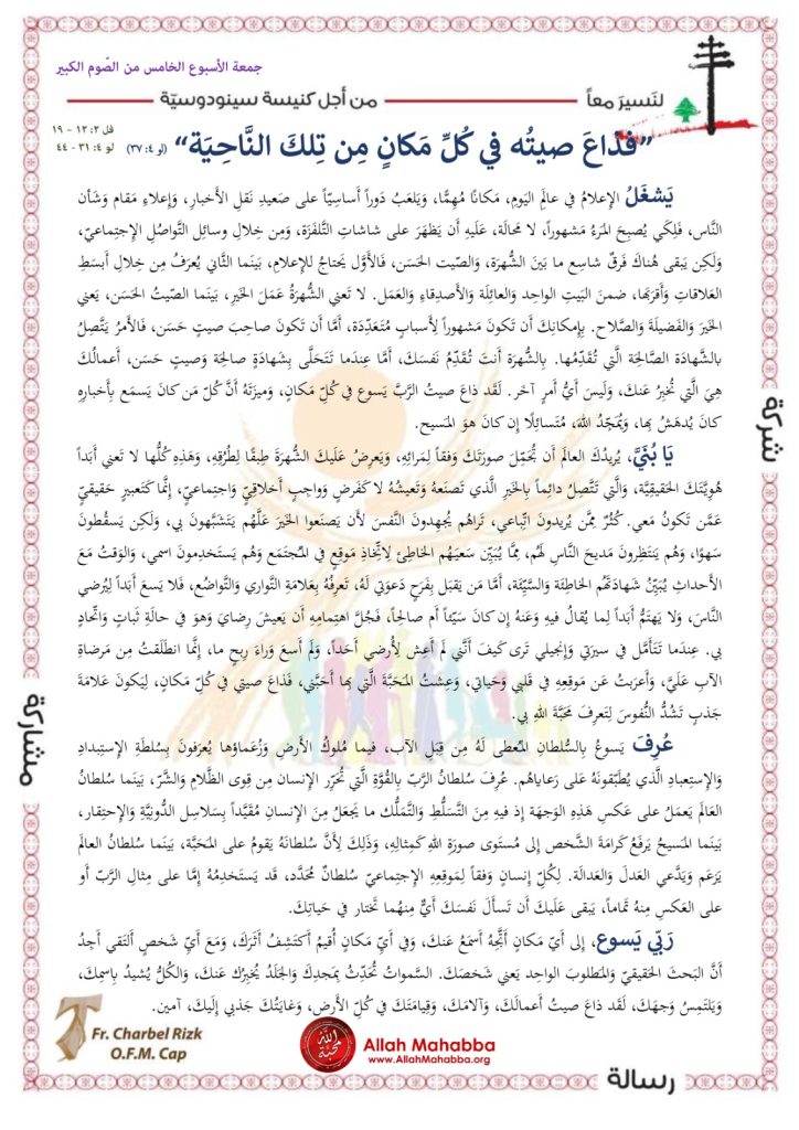 موقع Allah Mahabba يوم الجمعة الخامس من الصوم الكبير